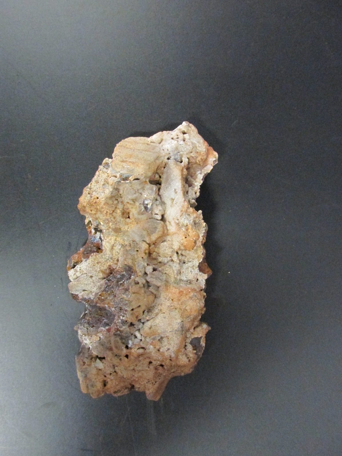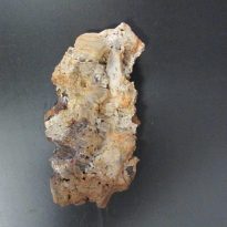 MJ04 ESP05 E: Espeleotema - Formação ferrífera - Na parte externa ocorre a crosta branca enquanto no seu interior ocorre a concreção ferruginosa. Alvéolos de goethita.