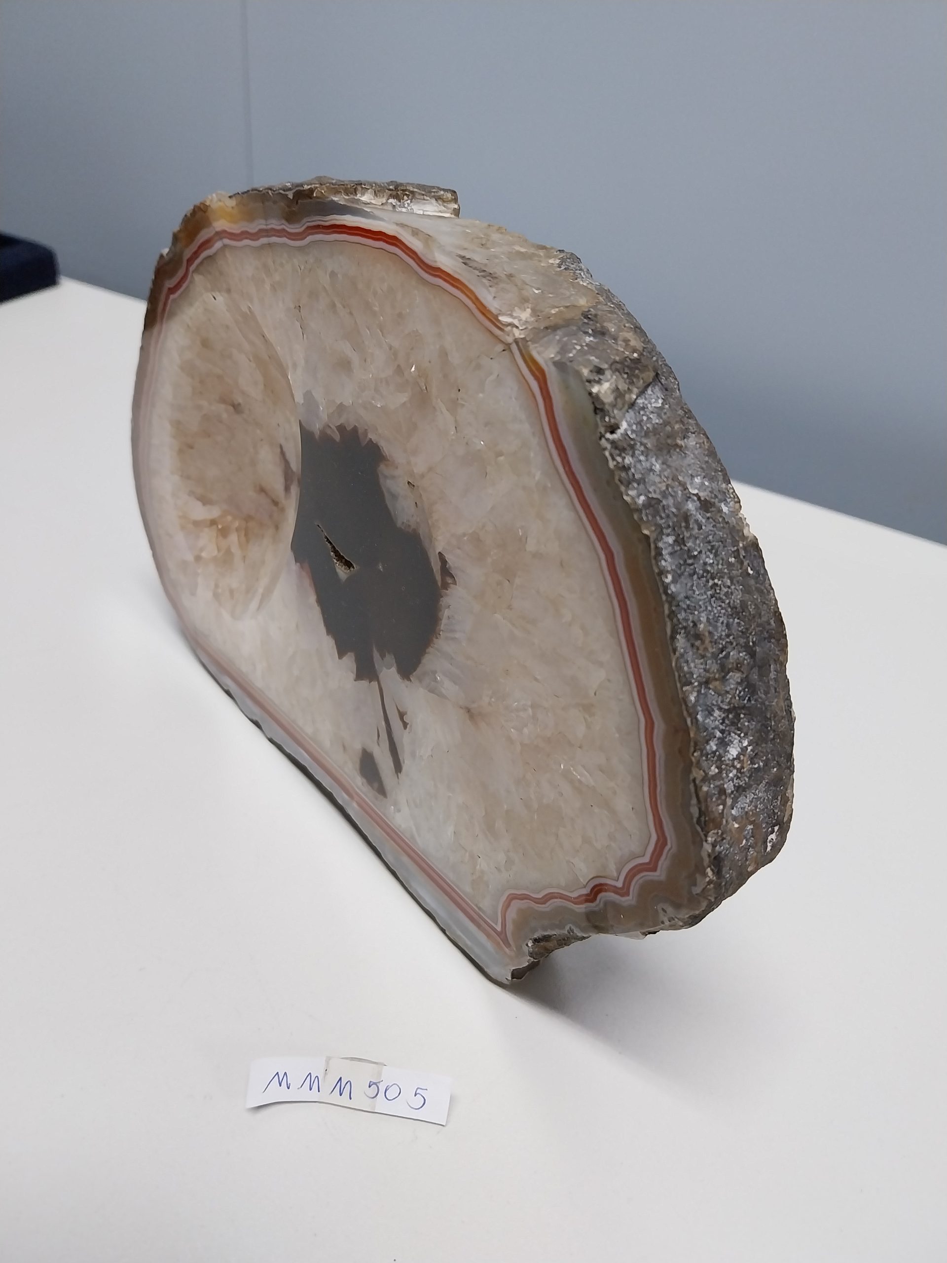 Geodo de quartzo Voltar julho 8, 2025 por Carina Camargos   Documento MMM 505 – Quartzo geodo1 (1) Fatia de geodo preenchido por quartzo (cinzeiro) Baixar Miniatura Compartilhar Número de RegistroMMM 505Tipo de materialMineralNome do espécimeGeodo de quartzoDescriçãoFatia de geodo preenchido por quartzo (cinzeiro)Composição químicaSiO2Classificação mineralSilicatosDimensões (cm)21,3 X 16,1 X 2,2Peso da amostra (g)1491Coordenada de LocalizaçãoArmário 16 - Prateleira 2 - Bandeja 23 Continue navegando Goethita Muscovita Voltar para a página de itens